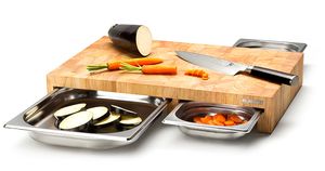 Schneidebrett m.Edelst.-Schubl 50x32.5x8.5cm